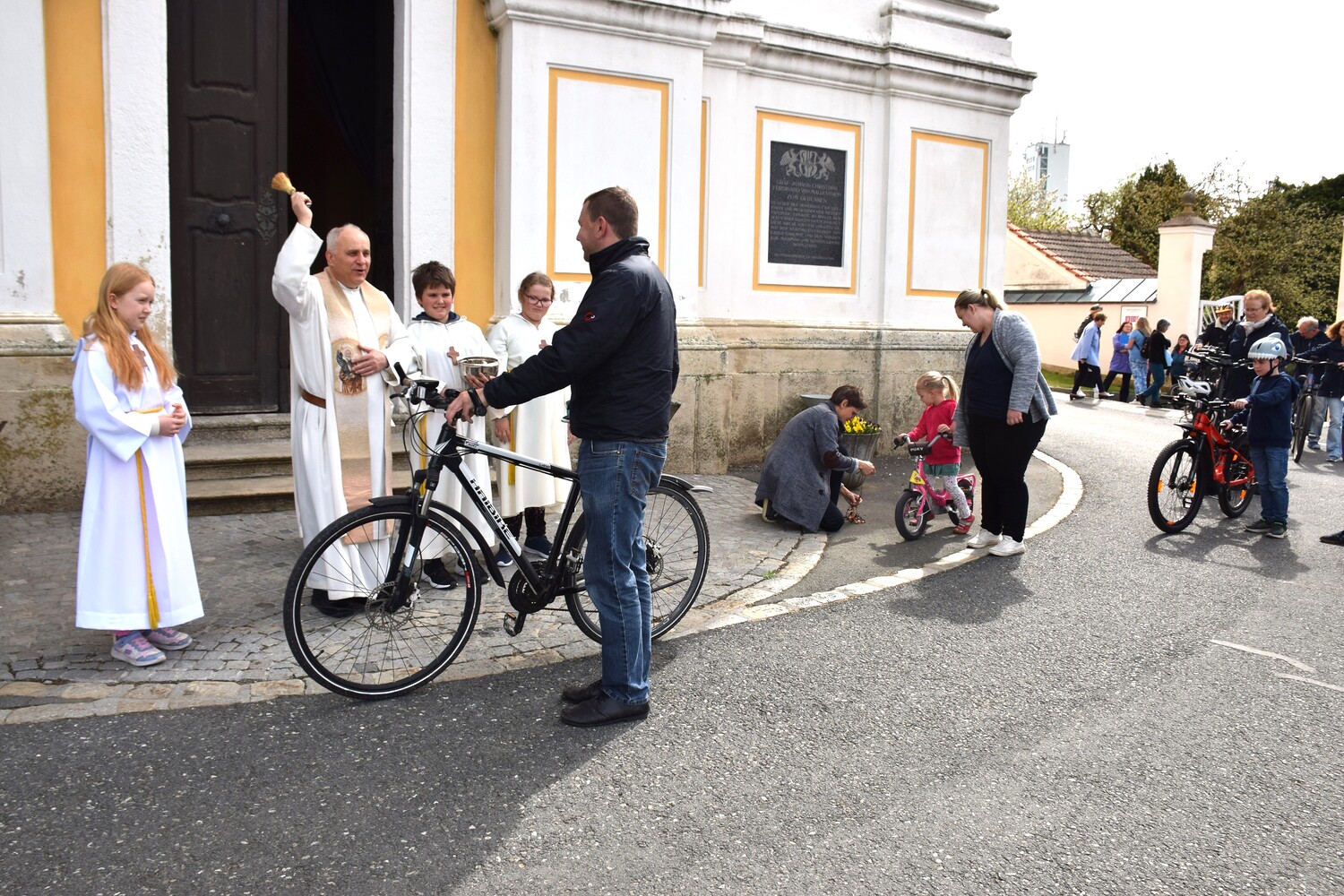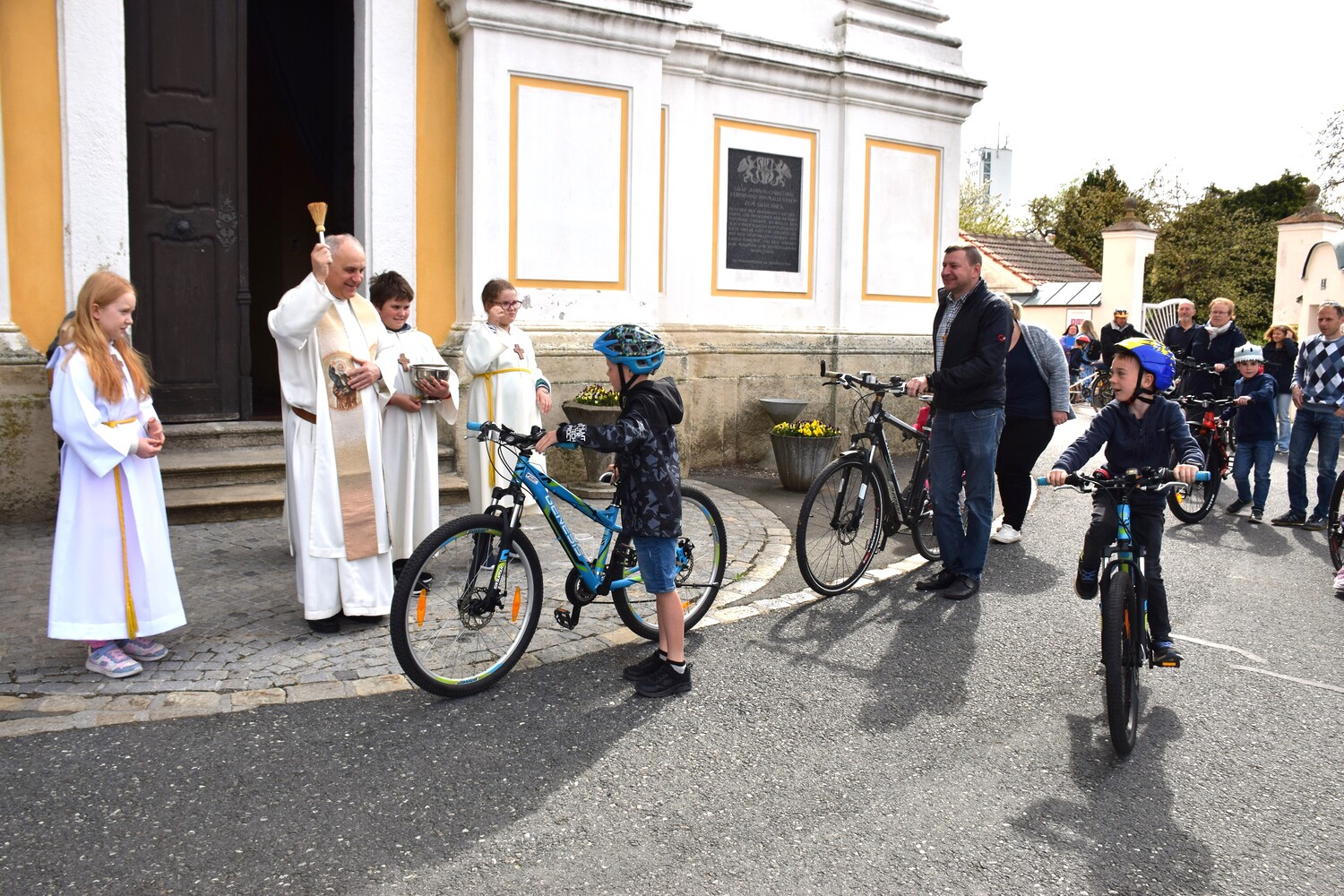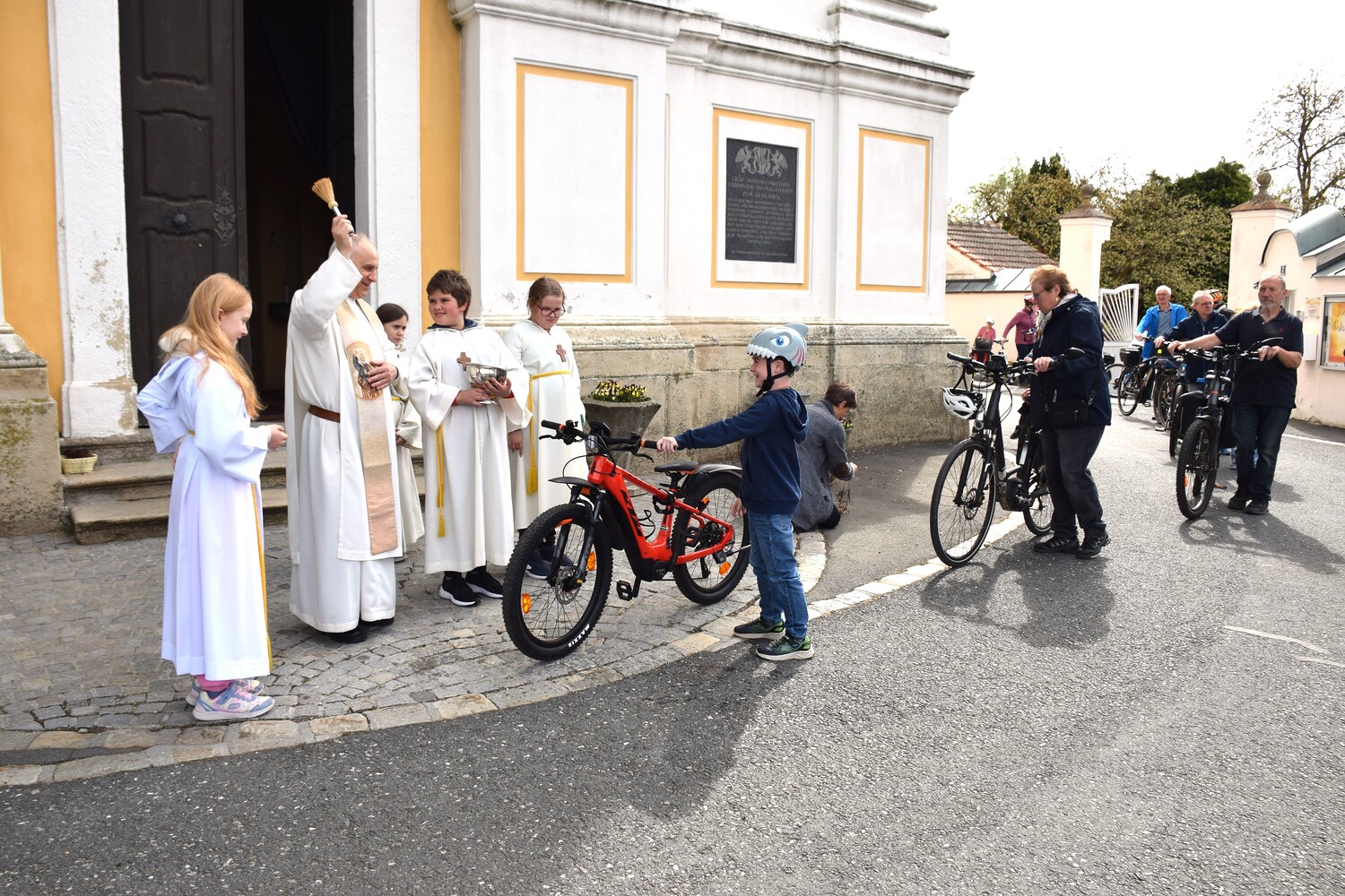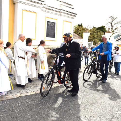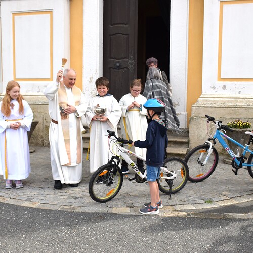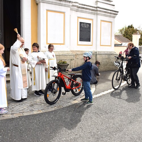 Am 14. April 2024 feierten wir eine Familienmesse mit Kinderfahrzeug- und Fahrradsegnung. Der Gottesdienst wurde vom ELKI-Chor musikalisch begleitet.