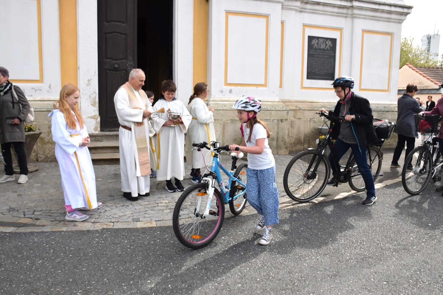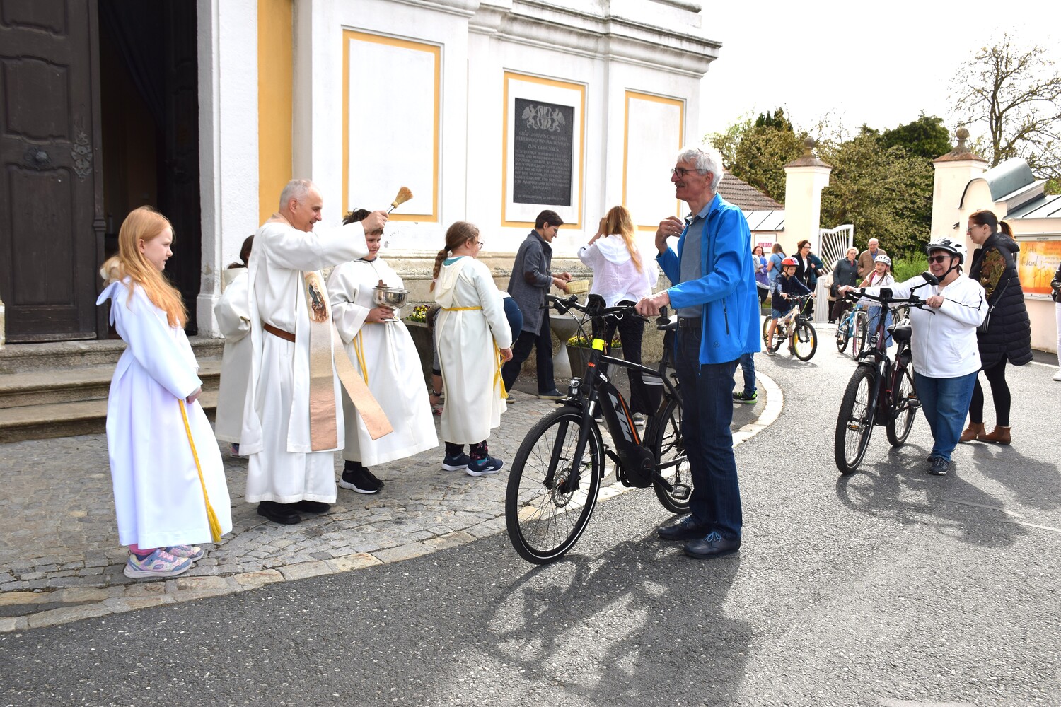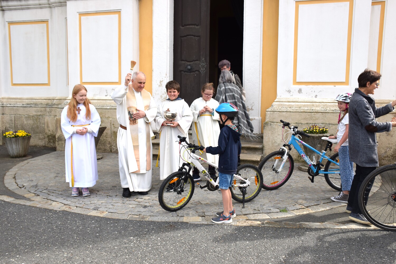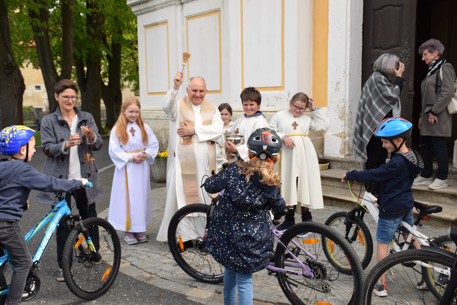 Am 14. April 2024 feierten wir eine Familienmesse mit Kinderfahrzeug- und Fahrradsegnung. Der Gottesdienst wurde vom ELKI-Chor musikalisch begleitet.