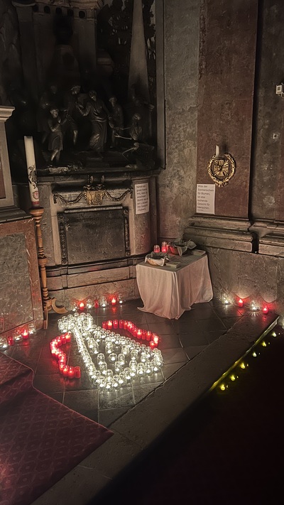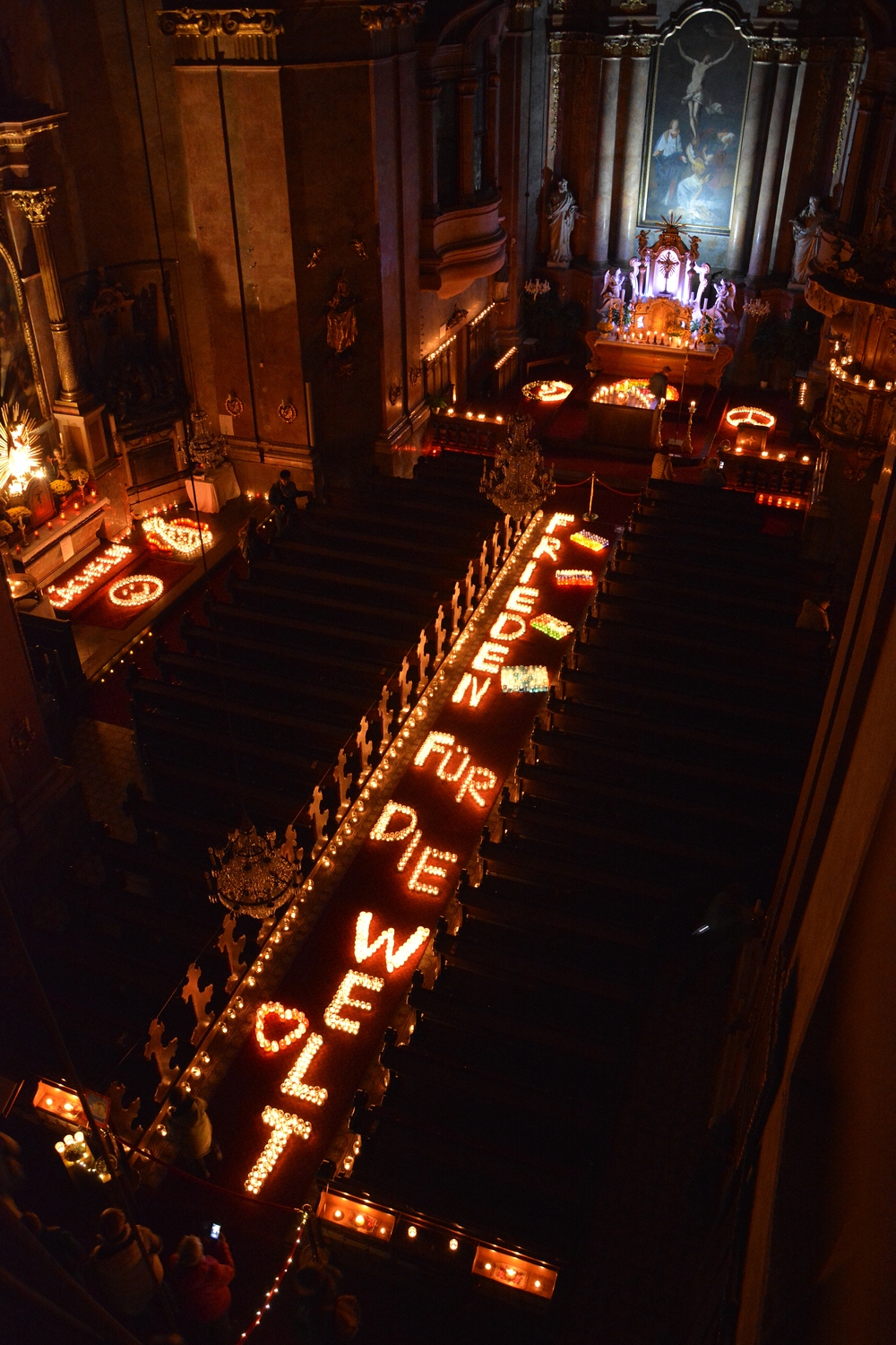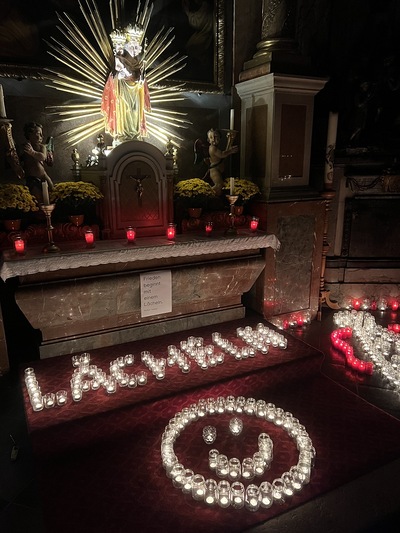 Am Vorabend von Allerheiligen feierten wir die "Nacht der 1.000 Lichter". Vor und in der Stadtpfarrkirche luden verschiedene Stationen zum Thema "Frieden für die Welt" zum Nachdenken ein.
